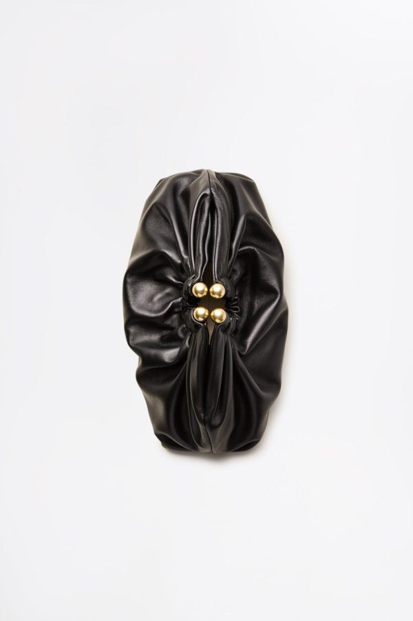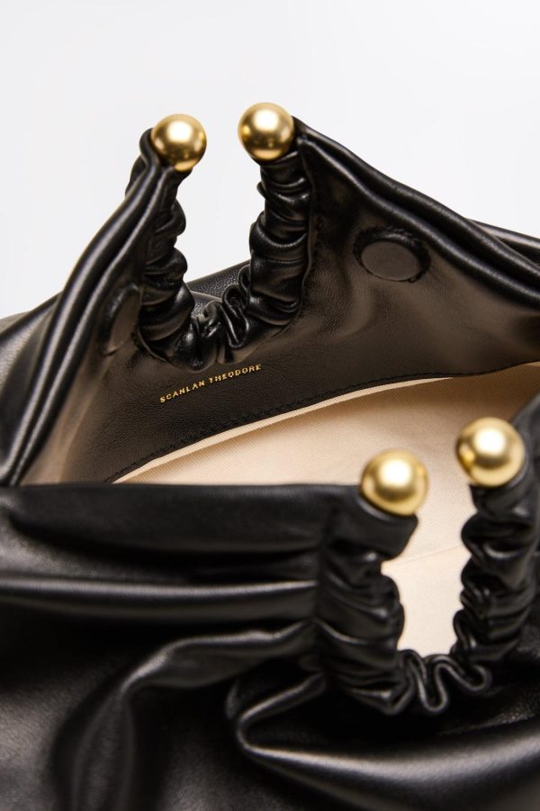Crafted from luxuriously supple leather, the handbag is created using luxurious, artisanal techniques to form the softly rounded silhouette. The U-shaped metal ring and decorative wrist strap add refined and considered detailing.