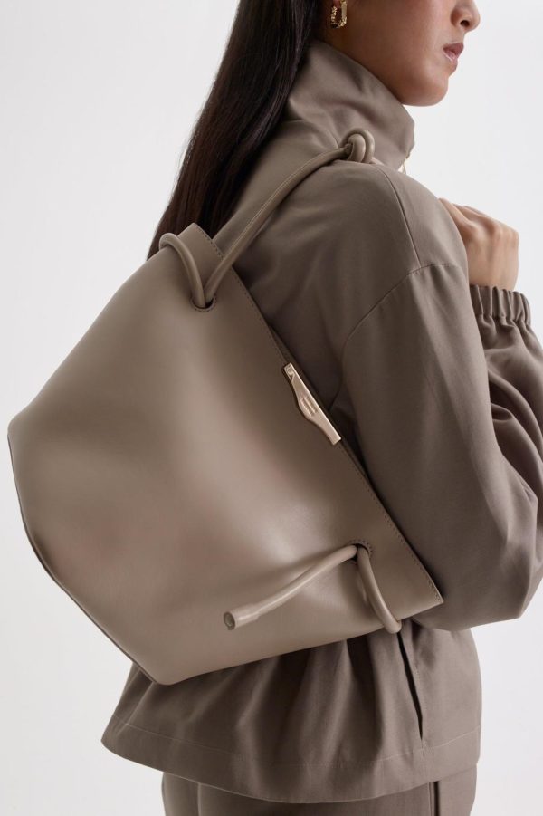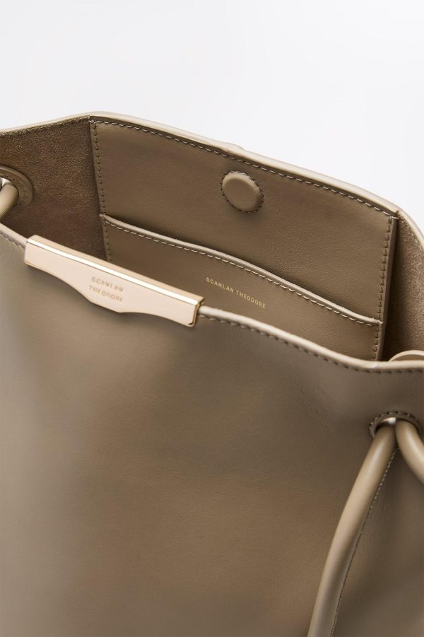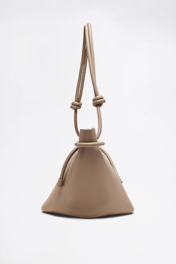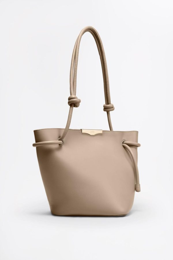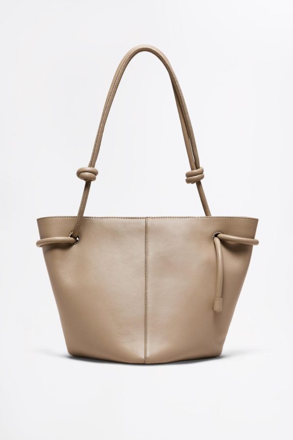 Crafted from supple Italian leather, this handbag offers a timeless interpretation of sophisticated luxury. The sculptural silhouette is defined by adjustable shoulder straps adorned with intricately knotted detailing. The bucket bag is complete with a magnetic closure and internal slip pocket, while the emblematic custom hardware adds an iconic signature touch to the bucket bag.