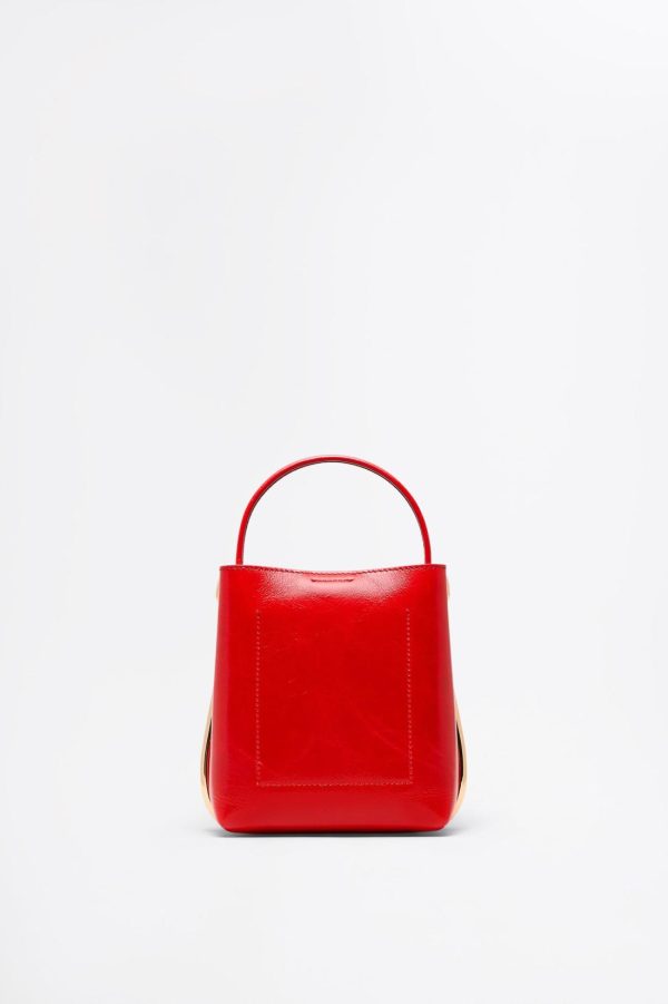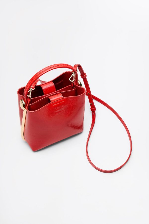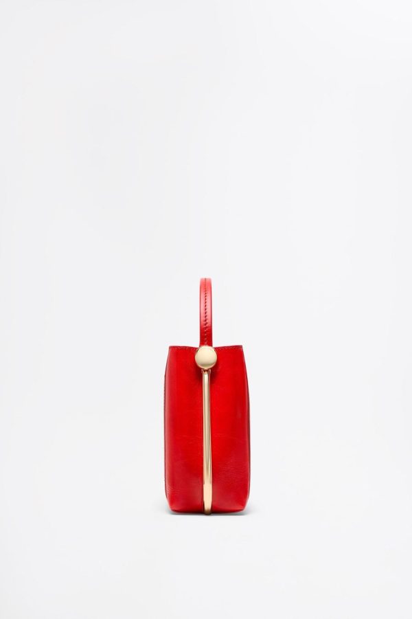 Crafted with precision from supple leather, this compact handbag exudes timeless elegance and understated luxury. The elegant silhouette is defined by a vibrant red tone complemented by light gold hardware that curves around the base of the bag. Designed as a versatile wardrobe essential, it features a detachable leather strap and thoughtfully organised internal compartments for effortless functionality.