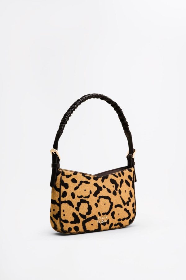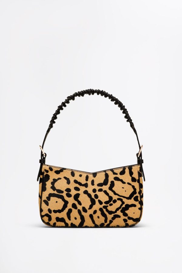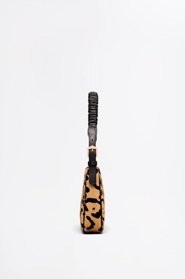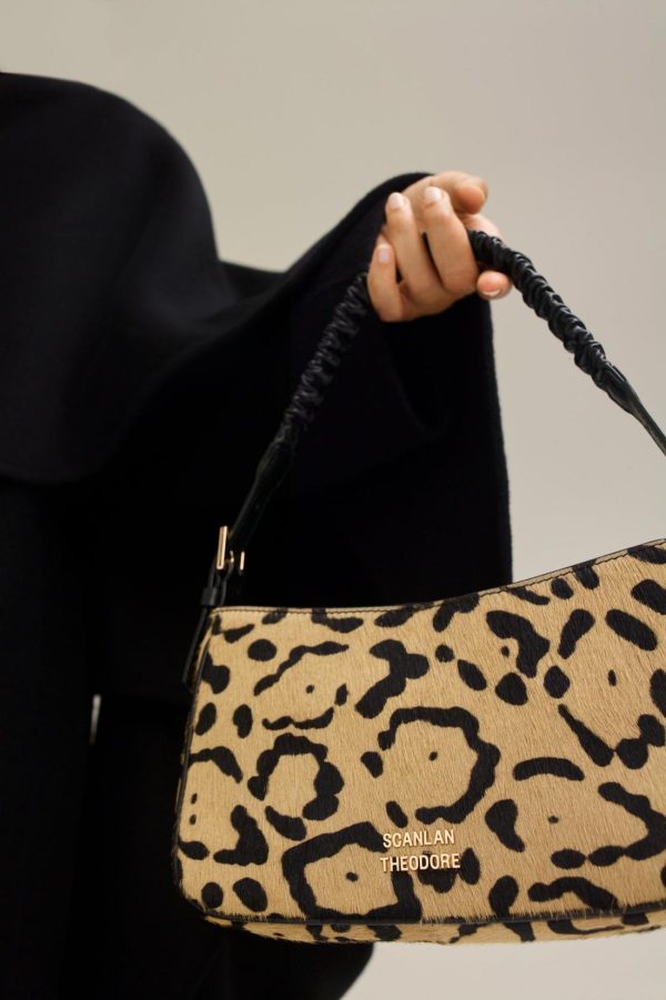 Reimagining artisanal craftsmanship and contemporary accessories, this handbag is crafted from tactile calf hair and supple leather. The shoulder bag is detailed with Scanlan Theodore’s emblematic gold hardware and an adjustable, ruched handle.
