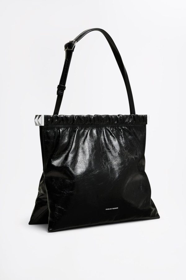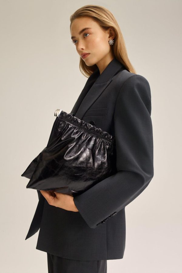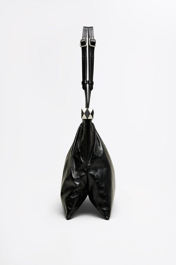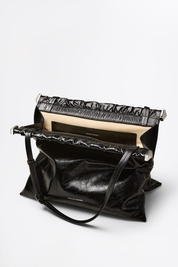 Timeless, versatile and sleek, this leather tote bag expresses perennial sophistication and evolving modernity. The embossed lettering logo adds its signature touch to the sculptural silhouette, while the silver hardware and ruched accents complete the aesthetic with a refined detail.