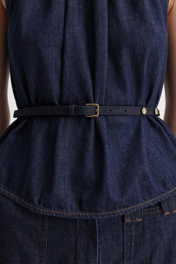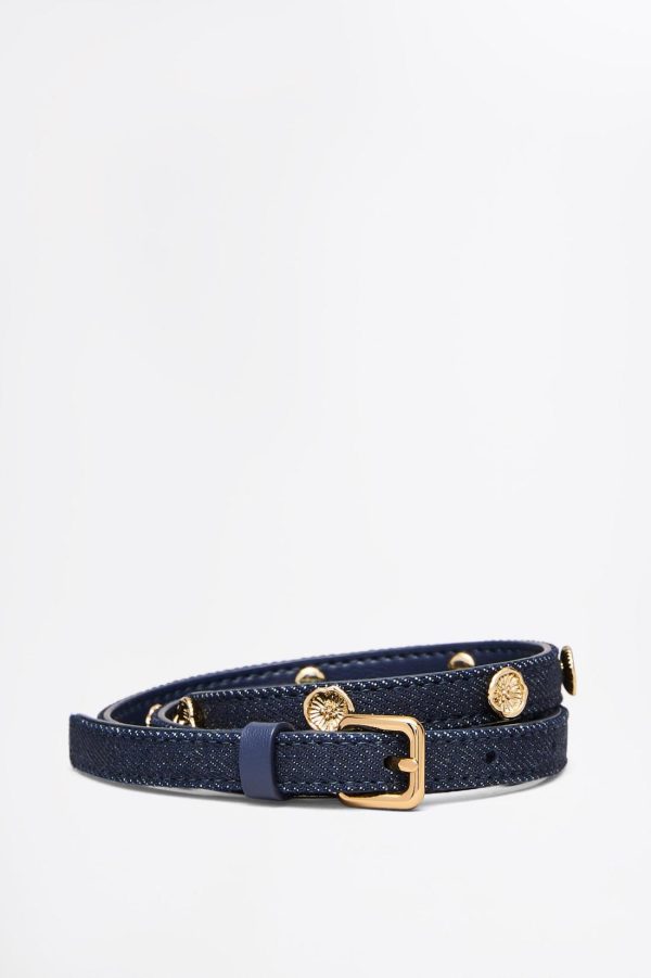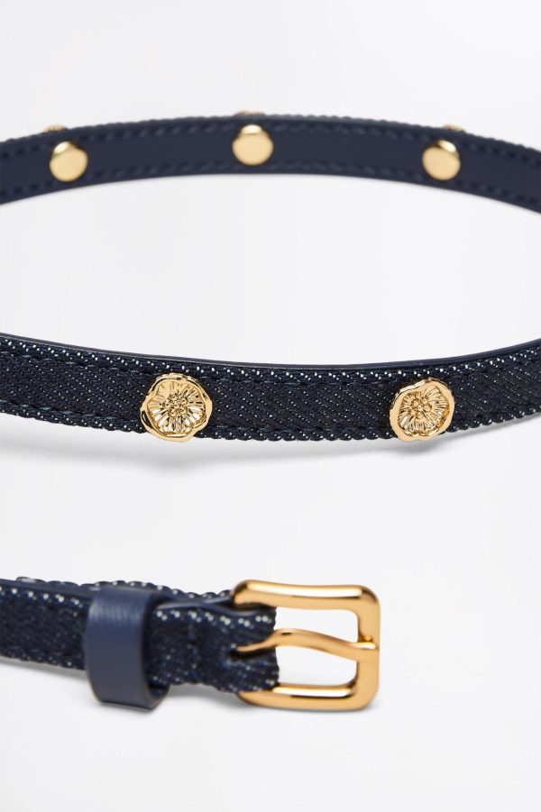 Balancing Scanlan Theodore’s emblematic codes and contemporary minimalism, the belt is crafted from cotton denim. The minimalist design is embellished by the brand’s signature poppy motif studs and light gold hardware.