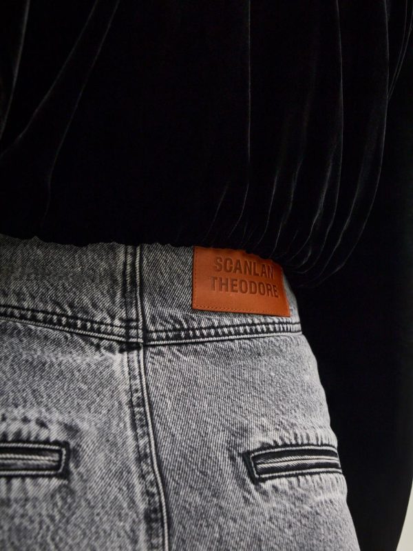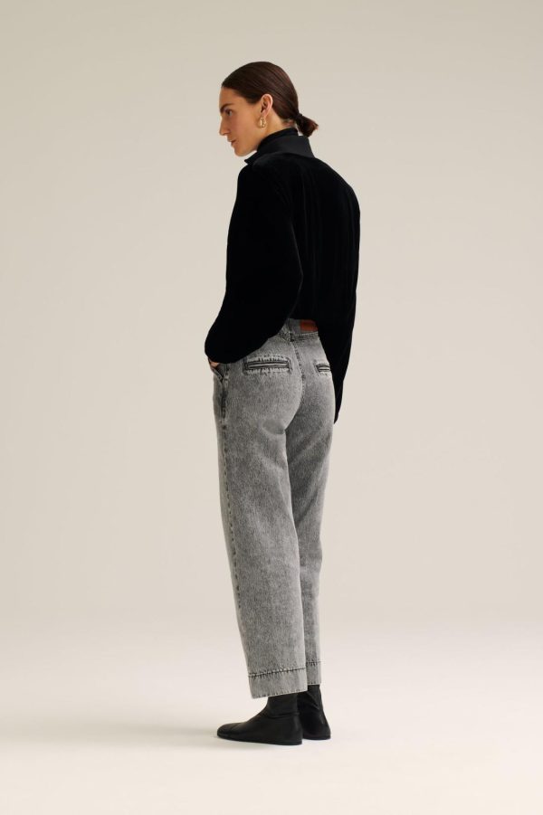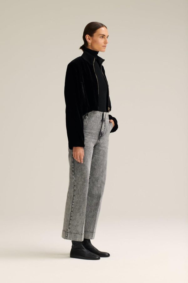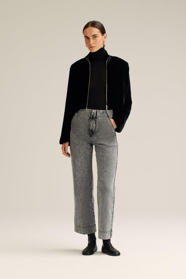 Cropped jeans crafted in washed charcoal denim for everyday elegance. Crafted to lengthen the leg, the jeans feature a flared hem and concealed zip fastening.