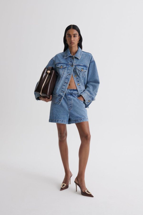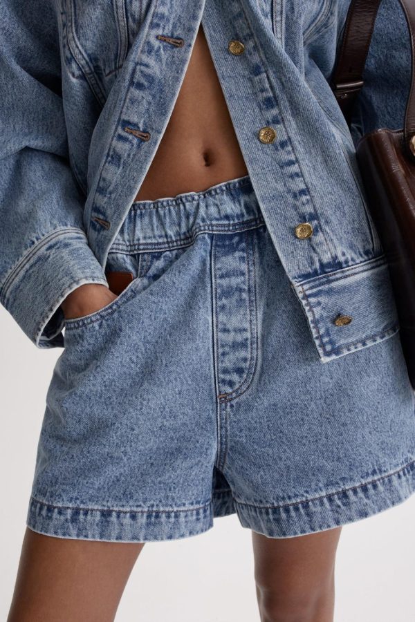 A modern interpretation of elevated comfort, the shorts balance relaxed tailoring with utilitarian elegance. Crafted from cotton in a mid indigo wash, the silhouette is defined by its elasticated waistband, offering ease of wear without compromising sophistication. The embossed leather logo patch provides a subtle yet distinctive accent.