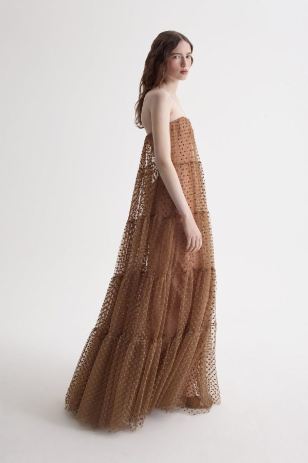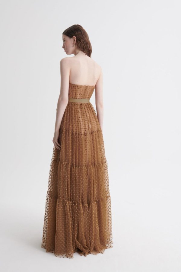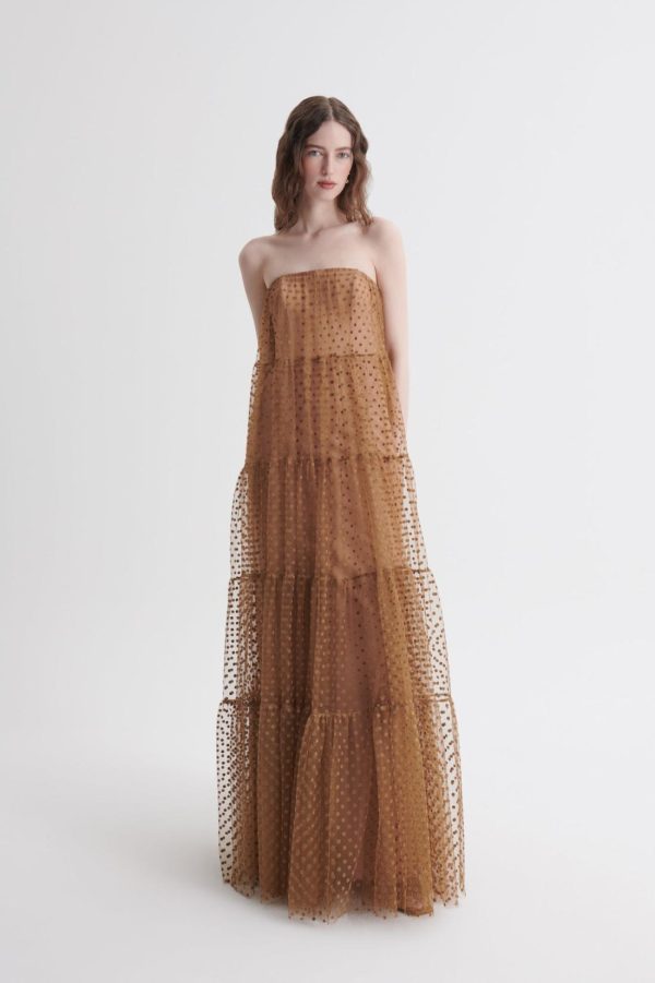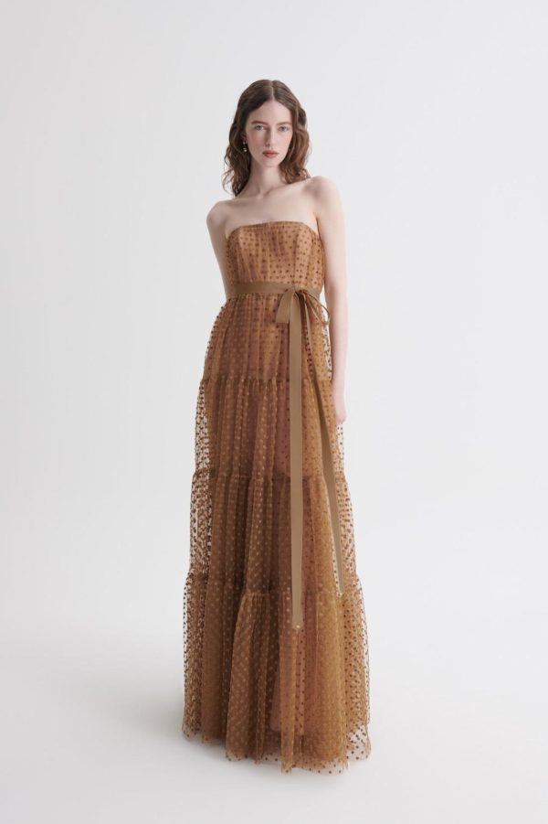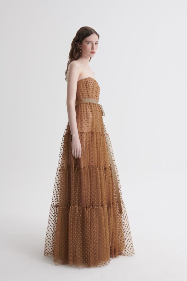 Women Dresses | Scanlan Theodore FRENCH VELVET SPOT TULLE GOWN Camel