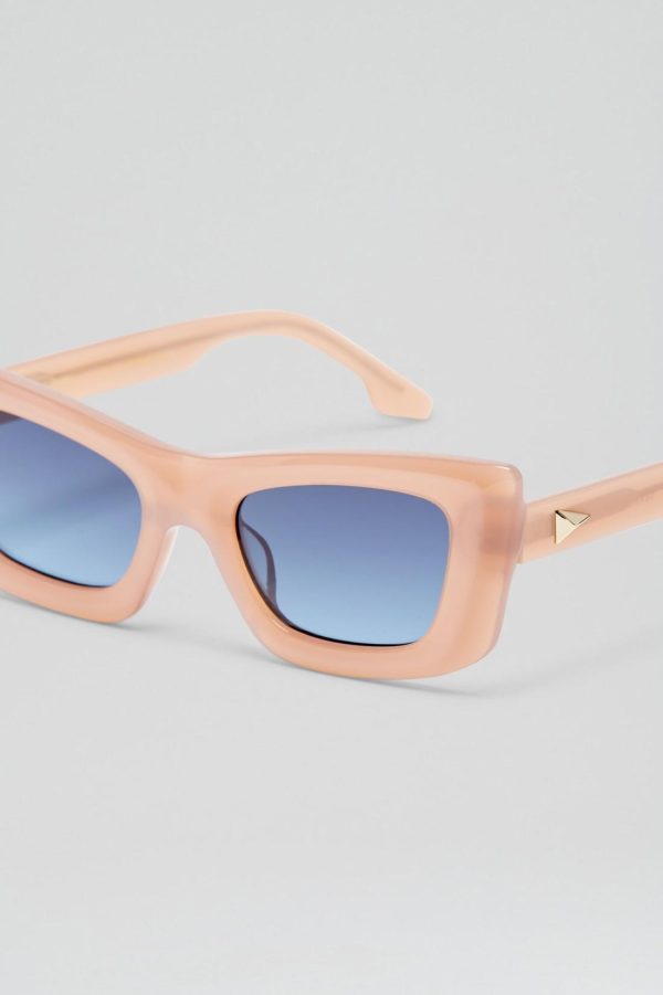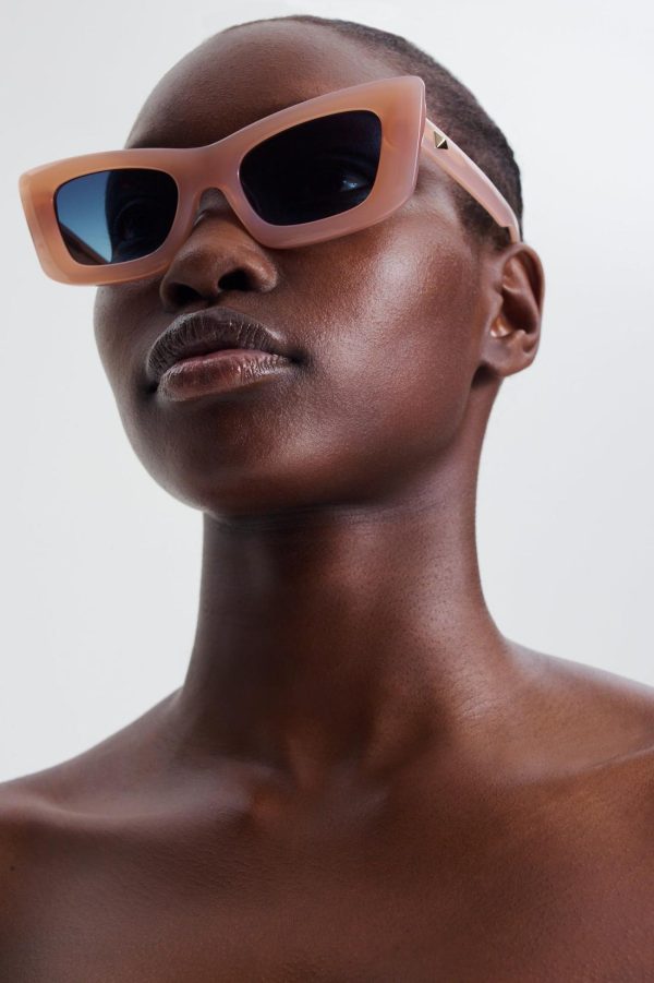 Crafted from Italian acetate, the ST Angular Cat Sunglasses in angel are a bold interpretation of classic cat eye frames. Featuring tinted lenses, the contemporary sunglasses are embellished with Scanlan Theodore’s signature iconography at the temple. Pair with daily ensembles for elegant, transeasonal styling.