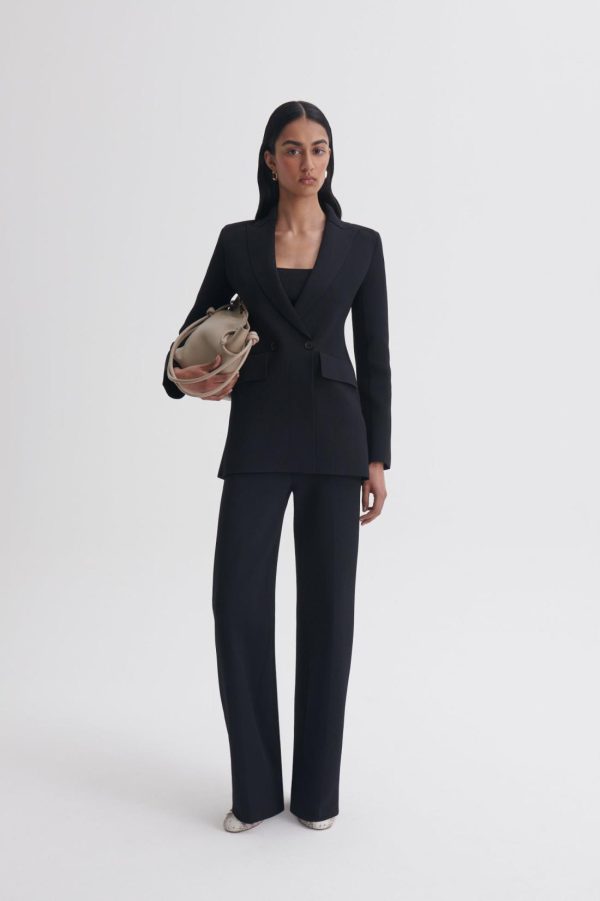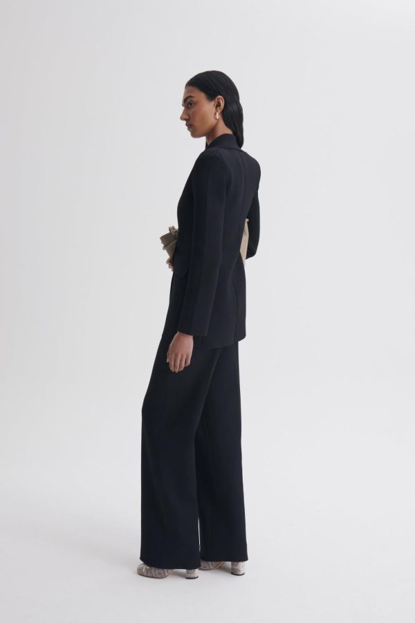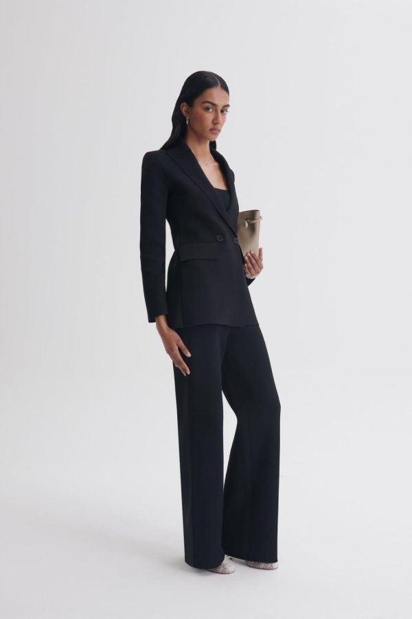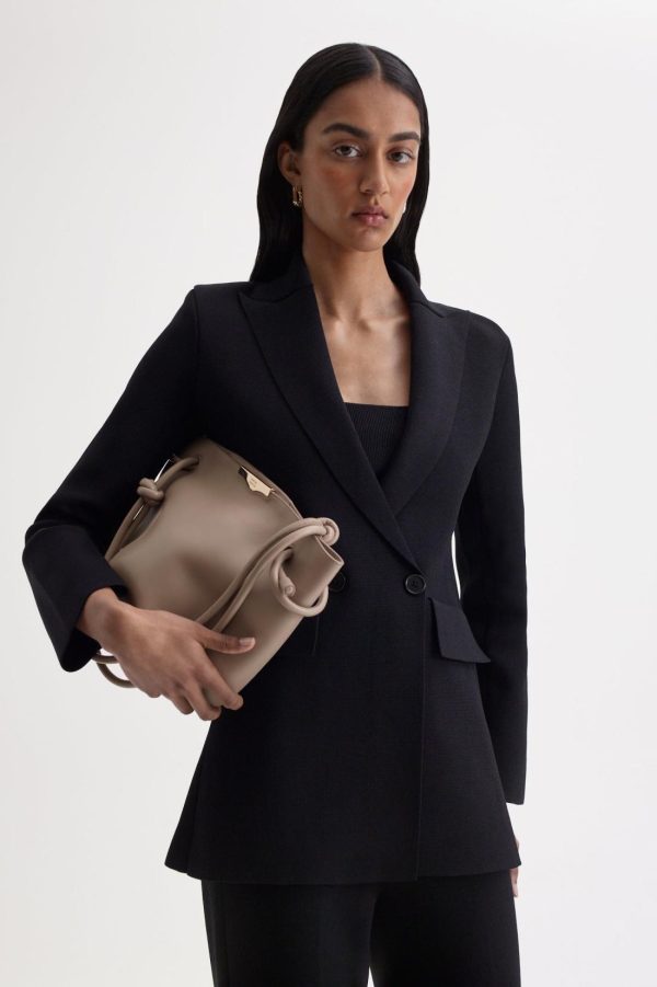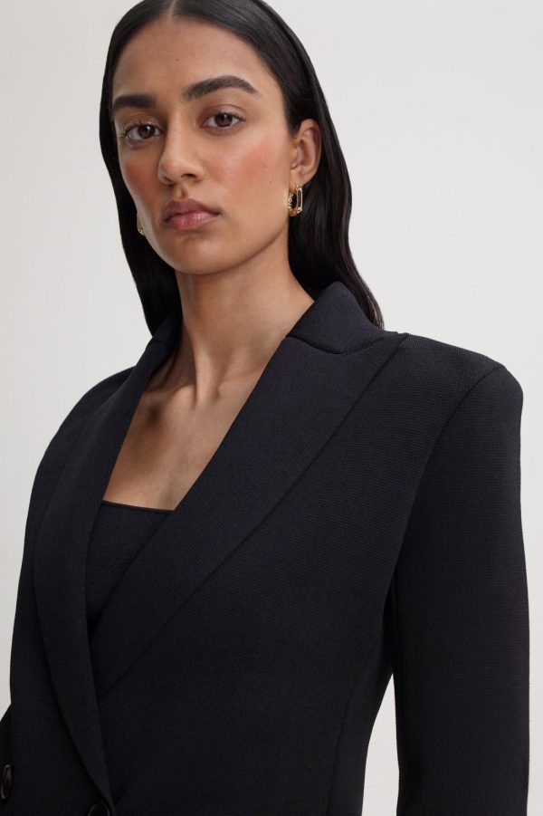 The Crepe Knit Tailored Jacket showcases a contemporary design sensibility. Crafted from Scanlan Theodore’s signature Crepe Knit fabrication, the jacket is tailored to a long-line, double-breasted silhouette.