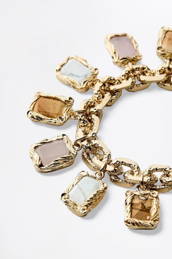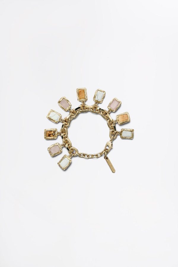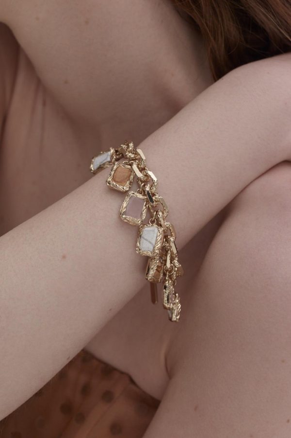 Infusing timeless design with refined embellishments, the bracelet is crafted in Italy from light gold chain links that are embellished by natural rose quartz, picture jasper and white howlite gemstones.