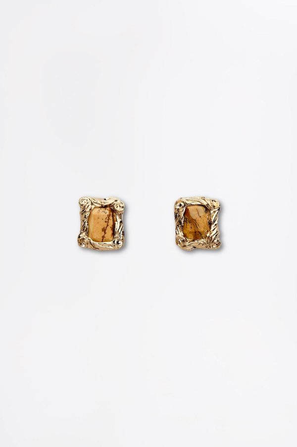 Infusing timeless design with refined embellishments, the studs are crafted in Italy from natural gemstones set in a textural light gold casing.