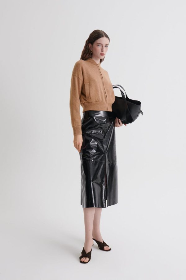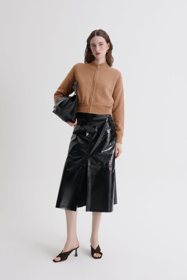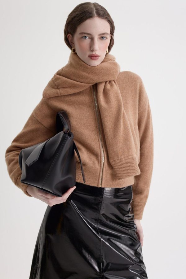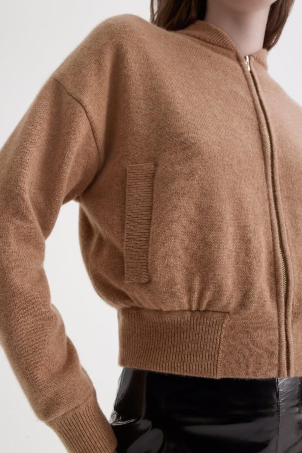 Designed as a contemporary approach to elegant informality and daywear staples, the jacket is crafted from cashmere. The soft ribbed trims, front zip closure and rich almond hue elevate the refined silhouette.