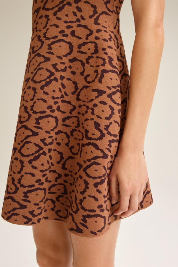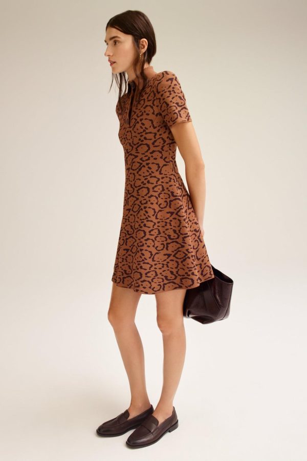 A timeless, refined style characterises this crepe knit dress. Reflecting the signature elegance synonymous with Scanlan Theodore, the A-line silhouette is detailed with an abstract animal motif jacquard and distinctive shirting accents.