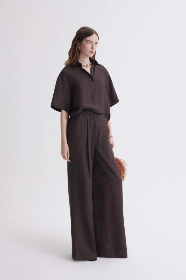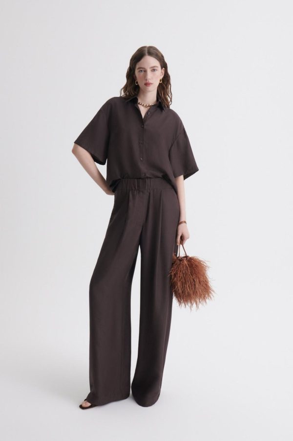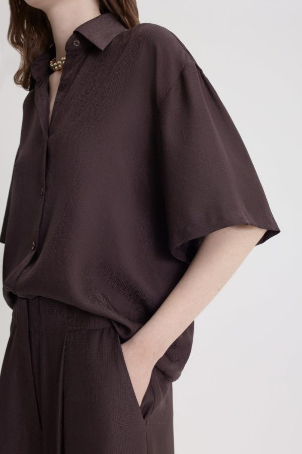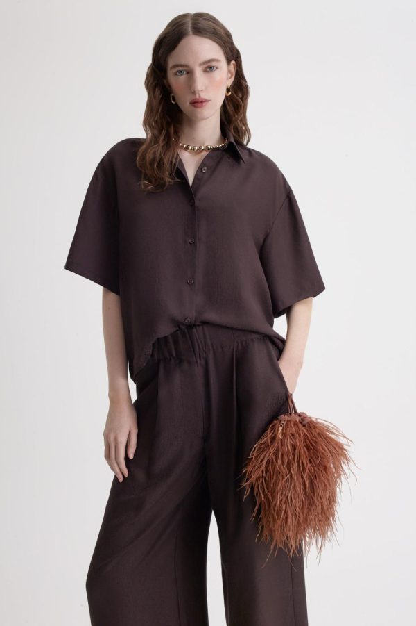 Women Shirting & T-Shirts | Scanlan Theodore SILK JACQUARD CROP SHIRT Espresso