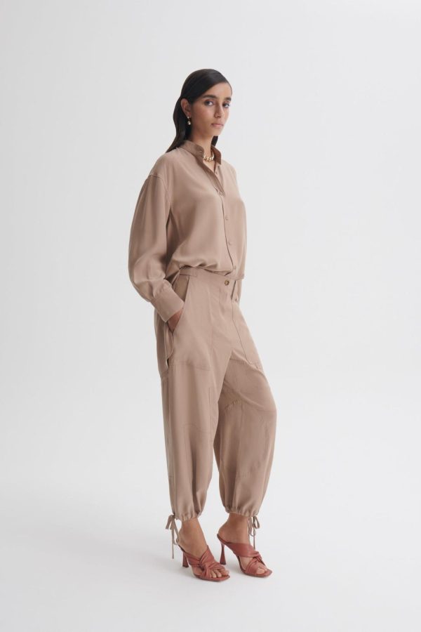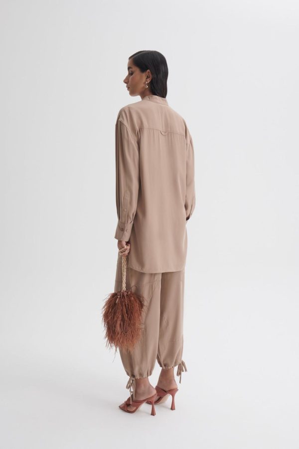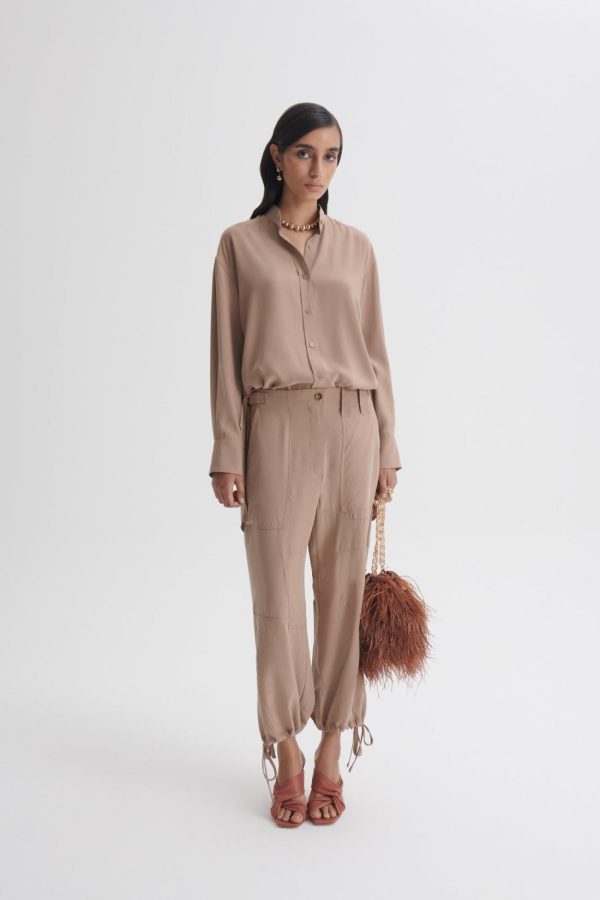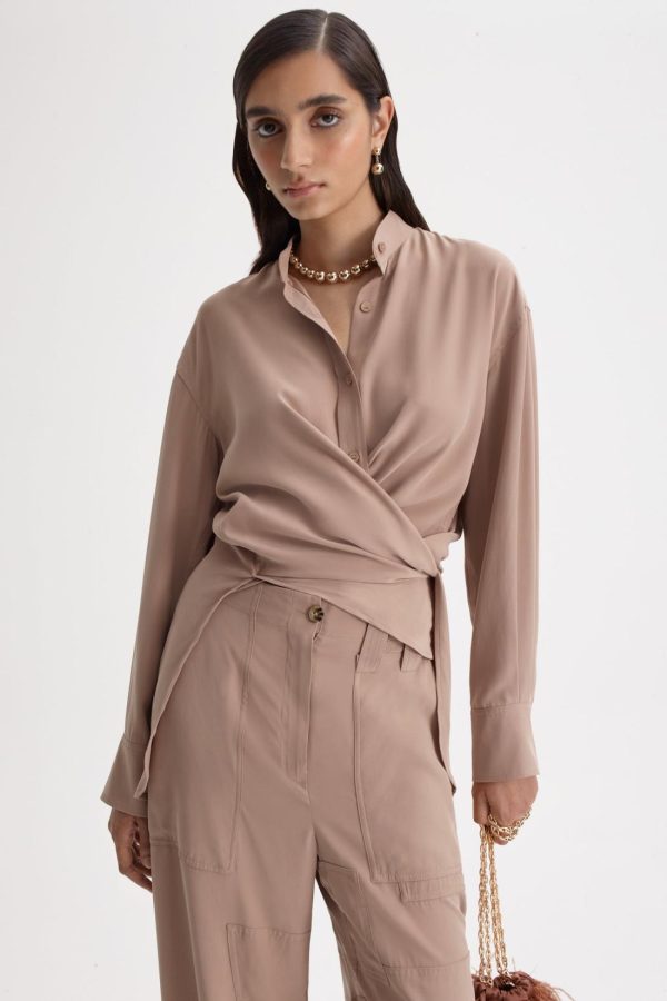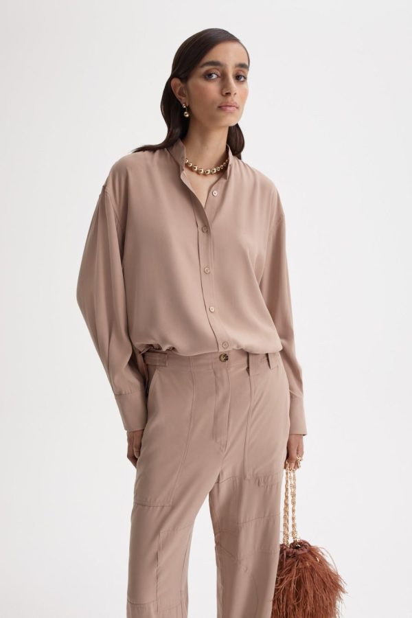 Women Shirting & T-Shirts | Scanlan Theodore SUEDED SILK CREW NECK SHIRT Caramel