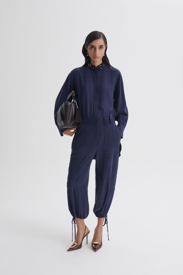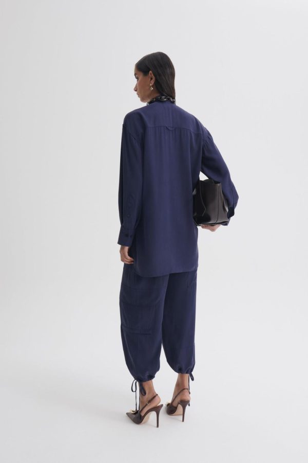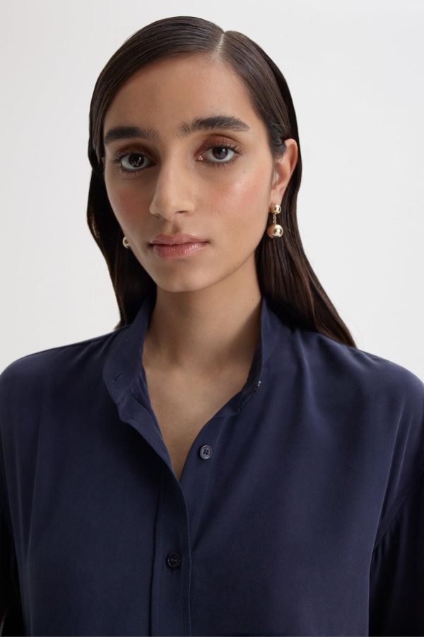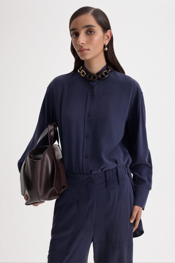 Women Shirting & T-Shirts | Scanlan Theodore SUEDED SILK CREW NECK SHIRT Navy