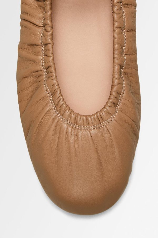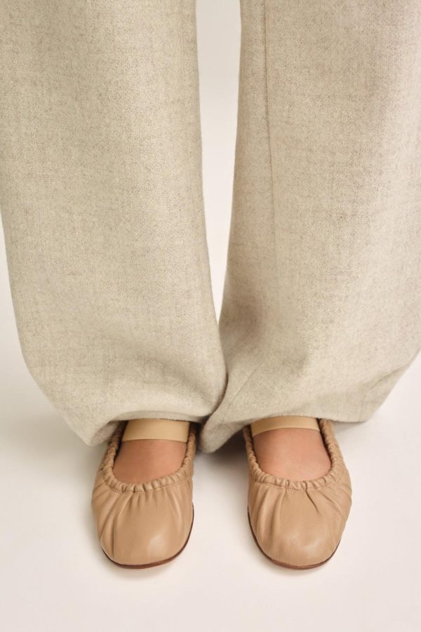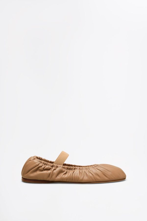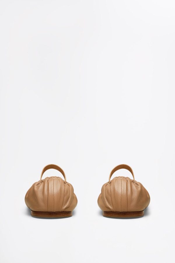Characterised by a timeless and feminine charm, these flats are crafted in Italy from soft leather. Echoing the classical elegance of ballerinas, the gathered silhouette is emphasised by the elasticated trims and round-toe silhouette.