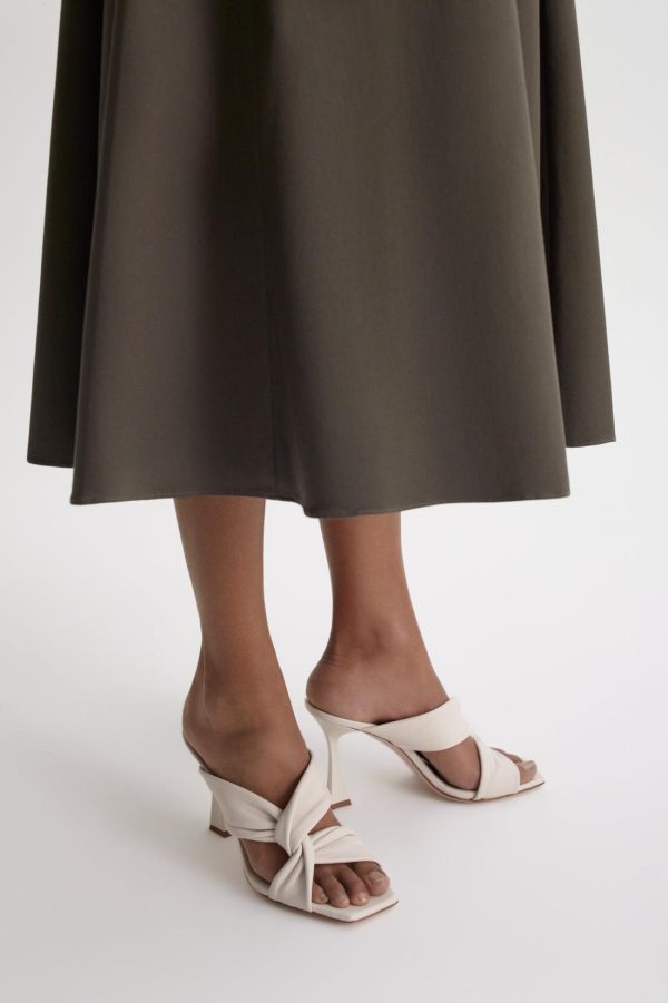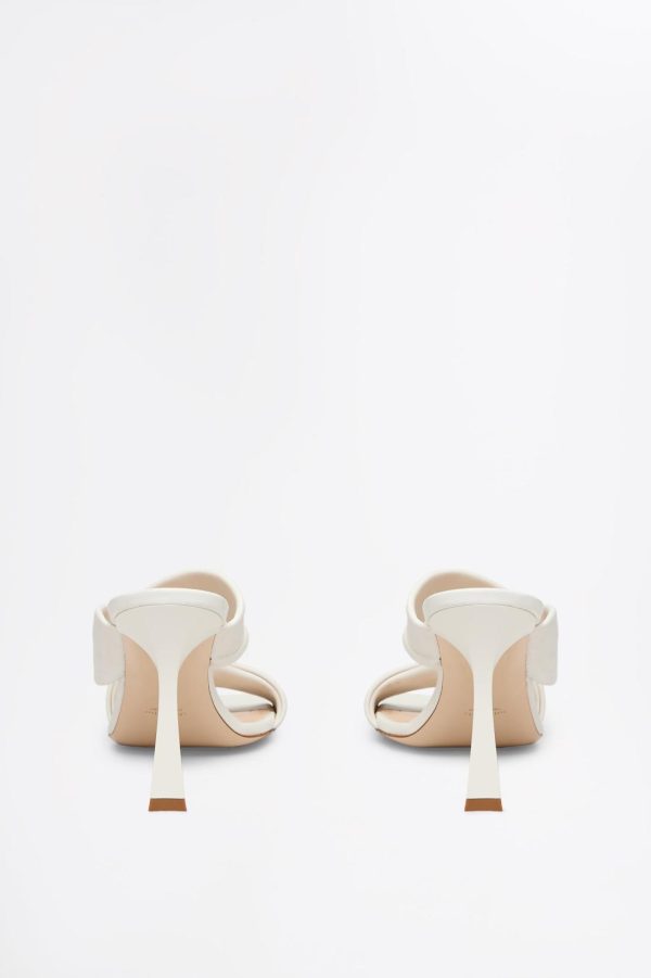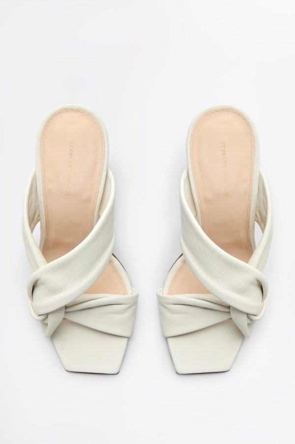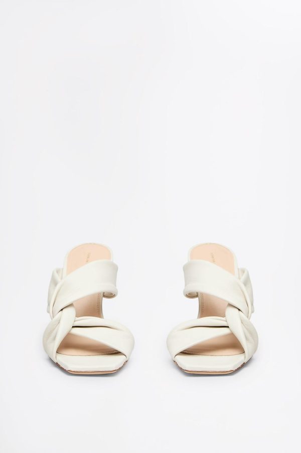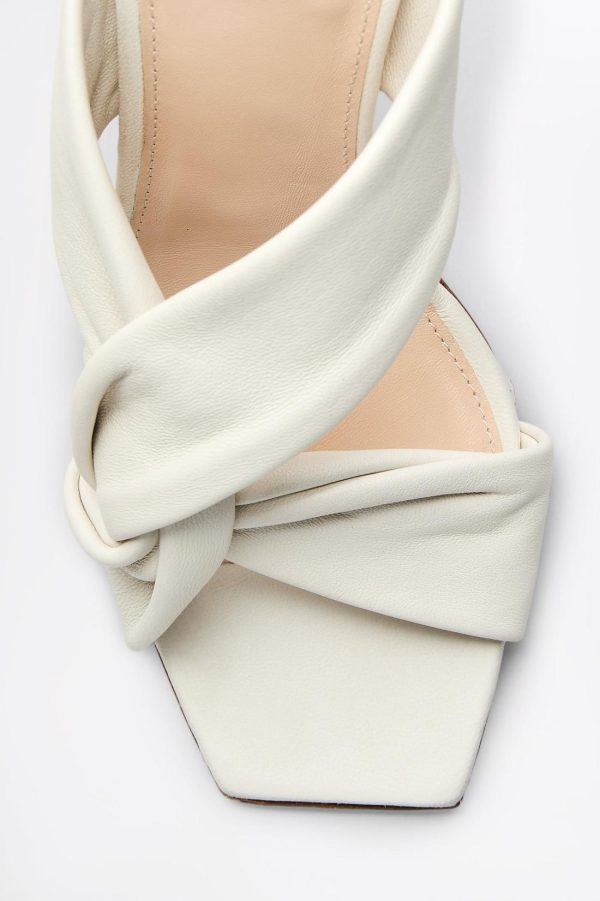 Luxuriously crafted in Italy from supple leather, the heeled sandal is embellished by twisted strap detailing that elegantly frames the foot. The open-toe silhouette is complemented by the 10cm sculptured heel, while the cream colourway imbues the shoe with timeless allure.