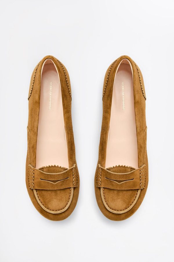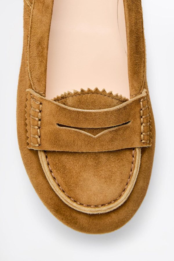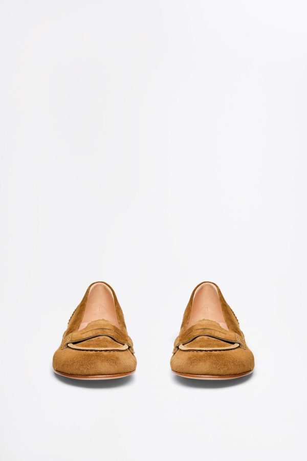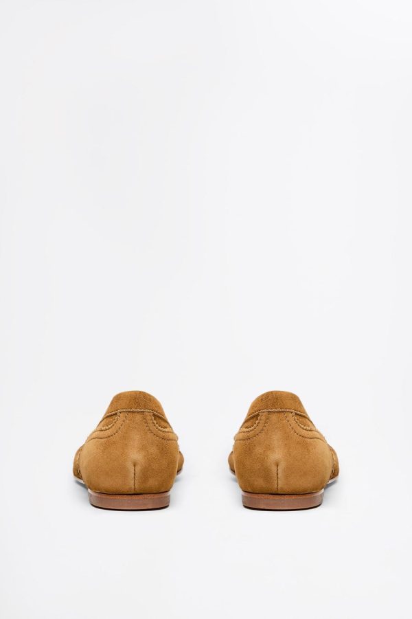 Crafted from soft Italian suede, these loafers modernise timeless footwear design codes. Inspired by refined elegance, the round toe silhouette featured a block heel and is decorated with tonal stitching.