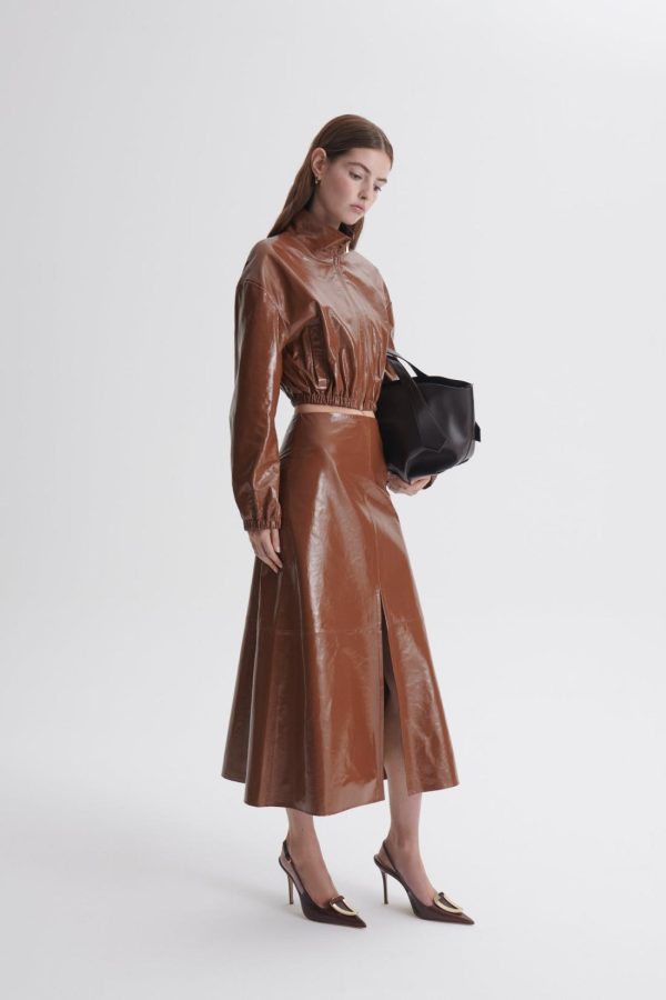 Women Skirts | Scanlan Theodore LEATHER DRAPED SKIRT Toffee