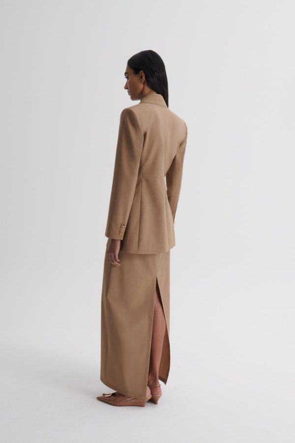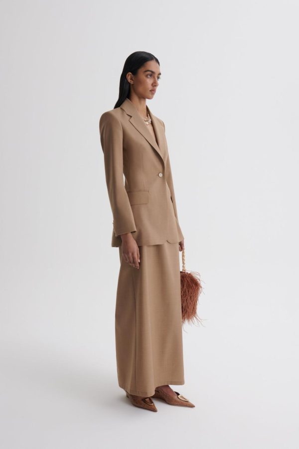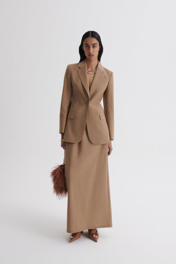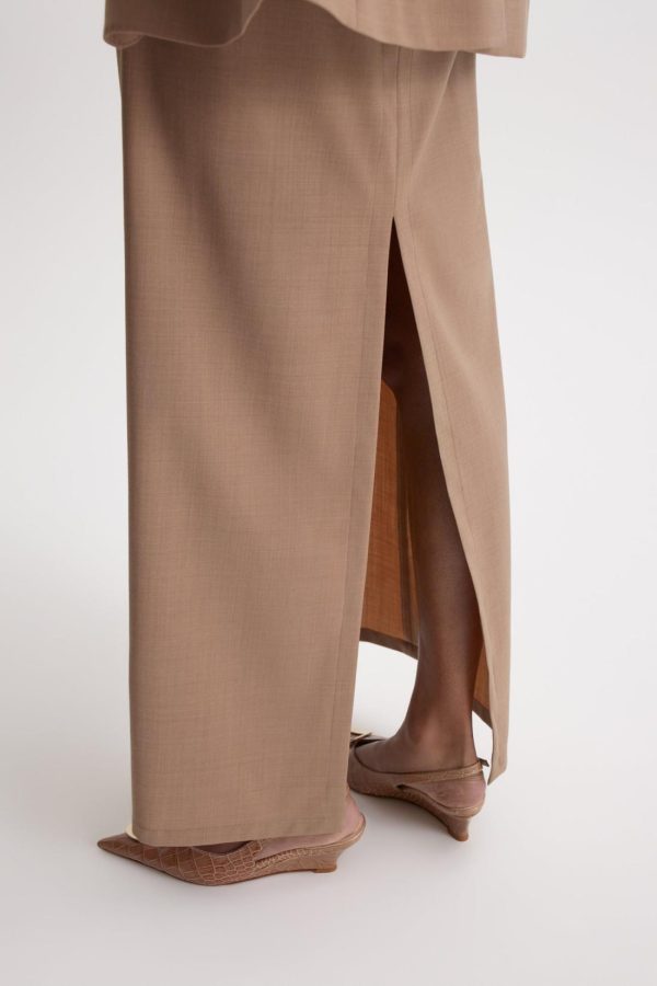 Reinterpreting perennial tailoring codes, this pencil skirt is crafted from a luxurious wool blend. Elegantly tailored to fall below the ankle, the minimalist silhouette features an elasticated waistband, dual side pockets and back split.