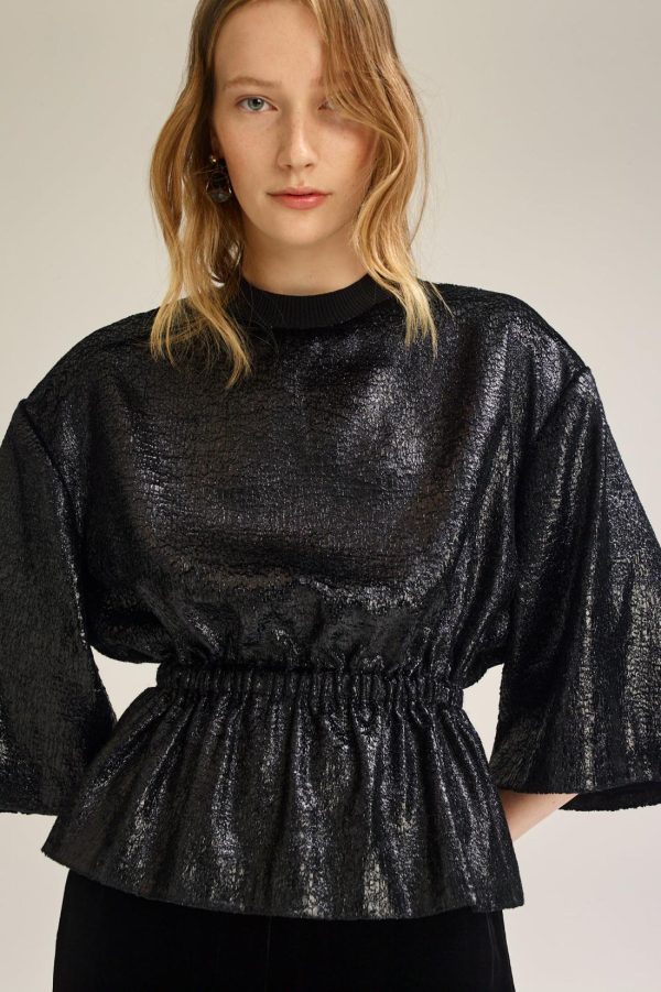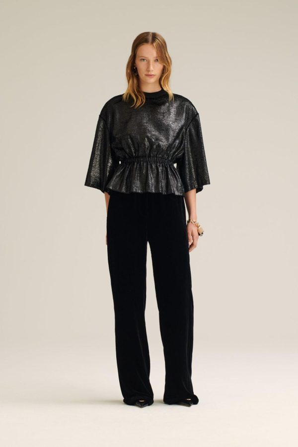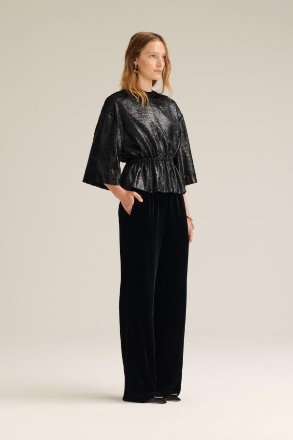 Women Tops & Blouses | Scanlan Theodore FRENCH LACQUERED VELVET TOP Black