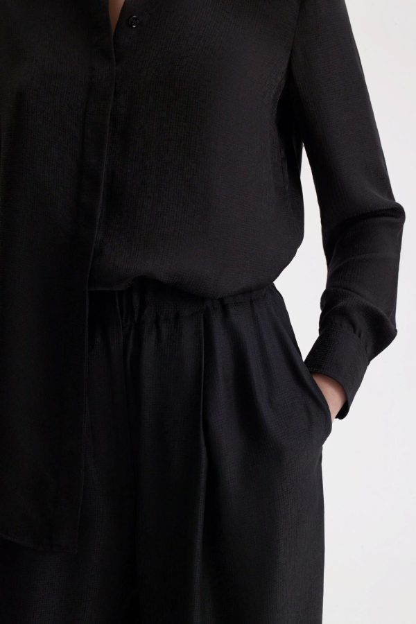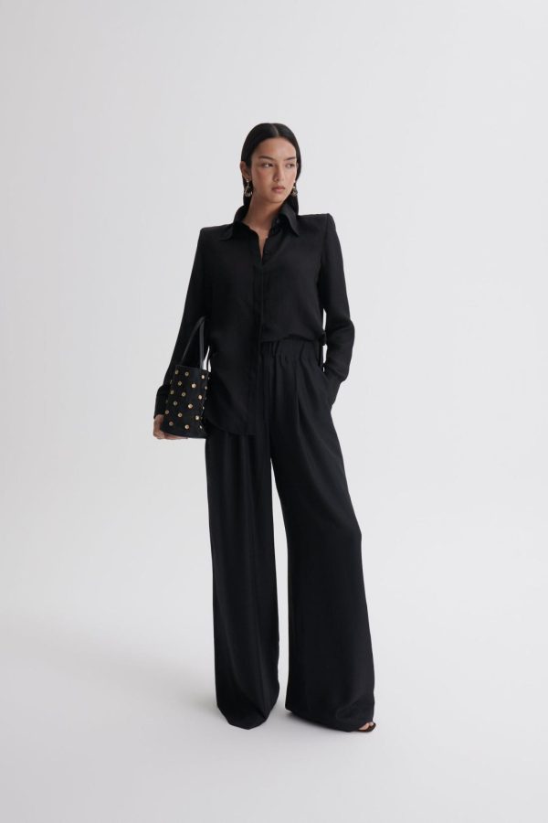 Imbued with a relaxed attitude, the tailored trousers showcase Scanlan Theodore’s signature elegance. The high-waisted silhouette is defined by the elasticated waistband and pleated detailing down the front of the leg.