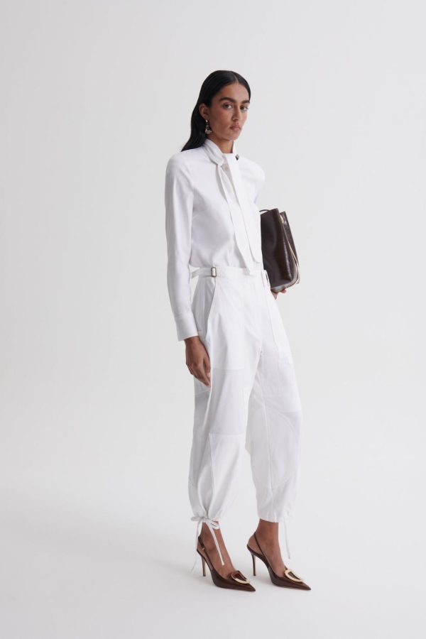 Expertly crafted from crisp cotton, these trousers exude effortless sophistication with a relaxed fit that tapers elegantly above the ankle. Thoughtfully designed drawcord detailing adds subtle volume, while gold-tone buckles at the waistband offer a refined, adjustable fit. Echoing elements of utility and elevated sportswear, the silhouette is finished with oversized pockets and panelled construction for a modern, structured appeal.