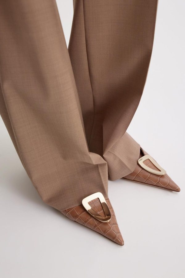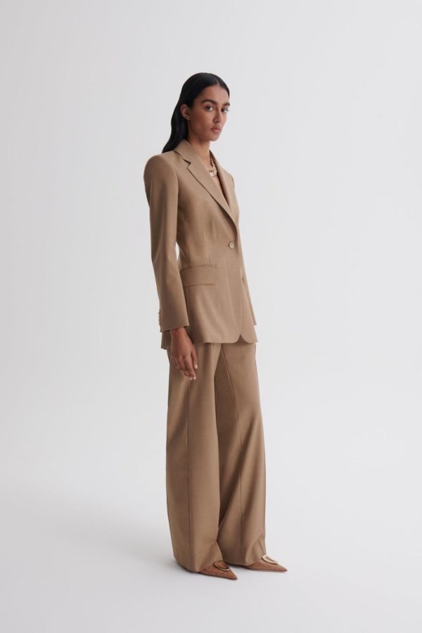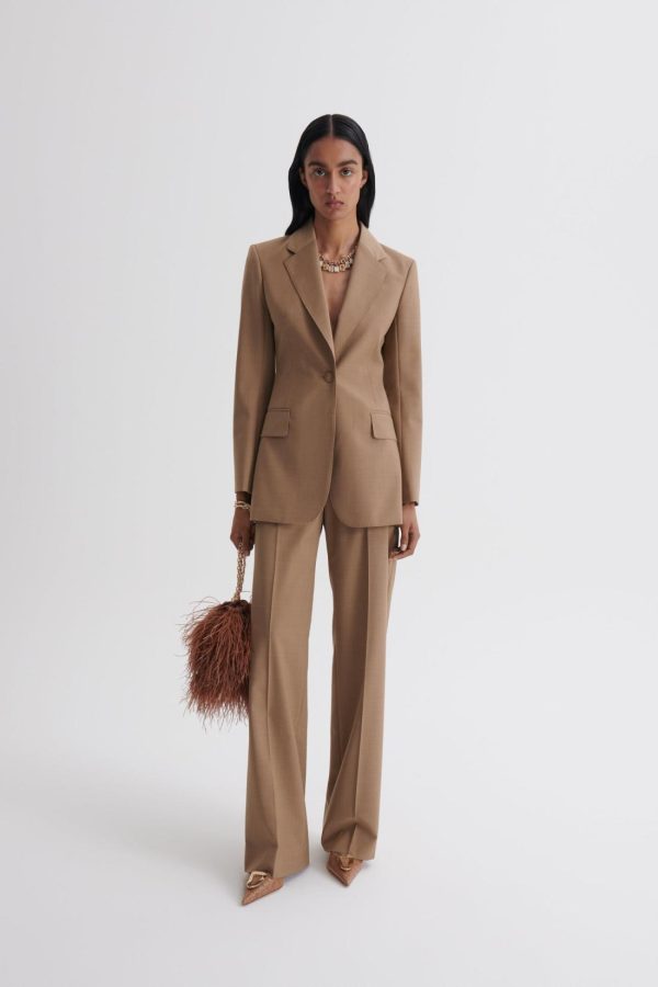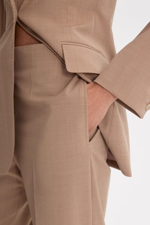 Crafted from a wool blend, this mid-rise design is softly tailored to a straight-leg silhouette. The elegant wardrobe essential features a front zip closure, dual side pockets, and pressed creases at the front and back of the leg.