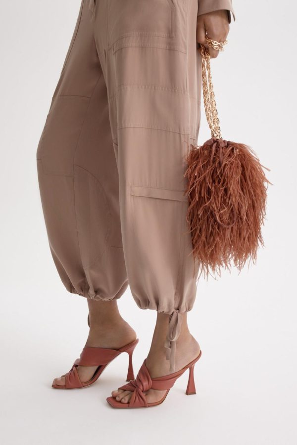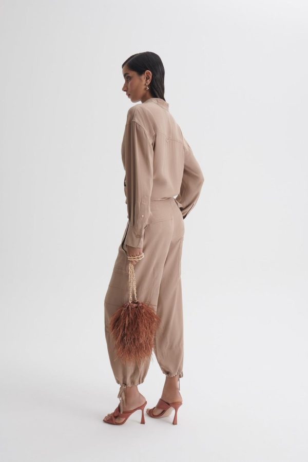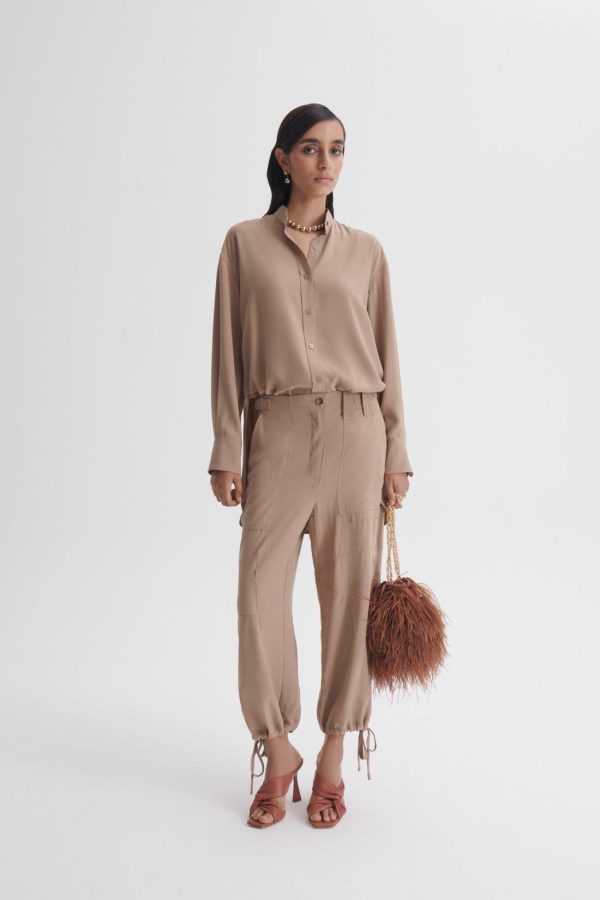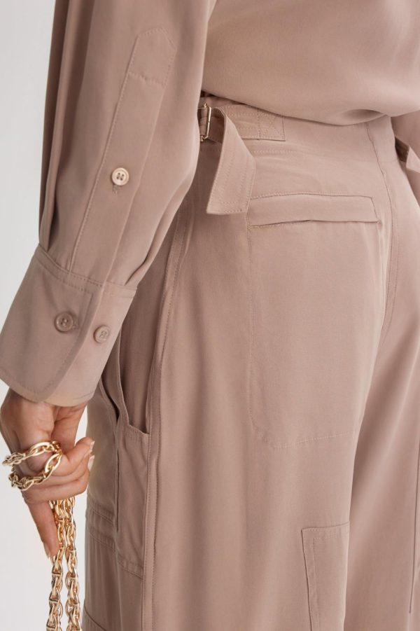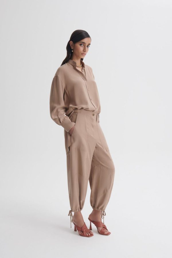 Crafted from sueded silk, these trousers exude effortless sophistication with a relaxed fit that tapers elegantly above the ankle. Thoughtfully designed drawcord detailing adds subtle volume, while gold-tone buckles at the waistband offer a refined, adjustable fit. Echoing elements of utility and elevated sportswear, the silhouette is finished with oversized pockets and panelled construction for a modern, structured appeal.